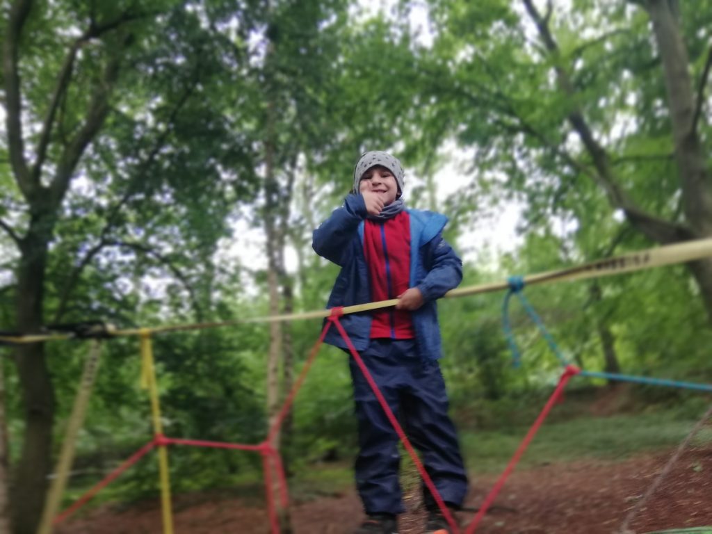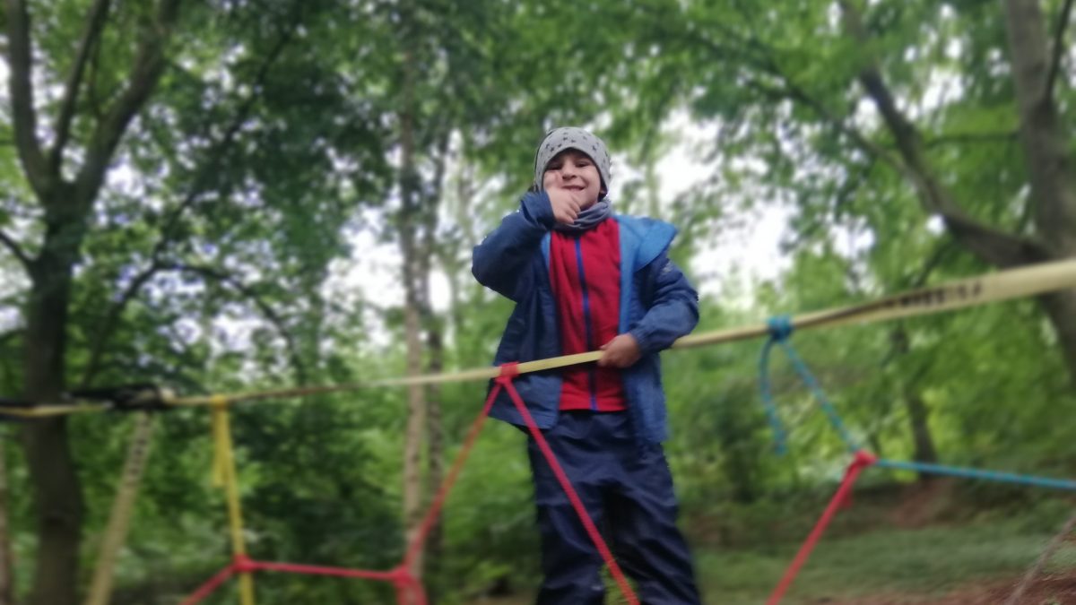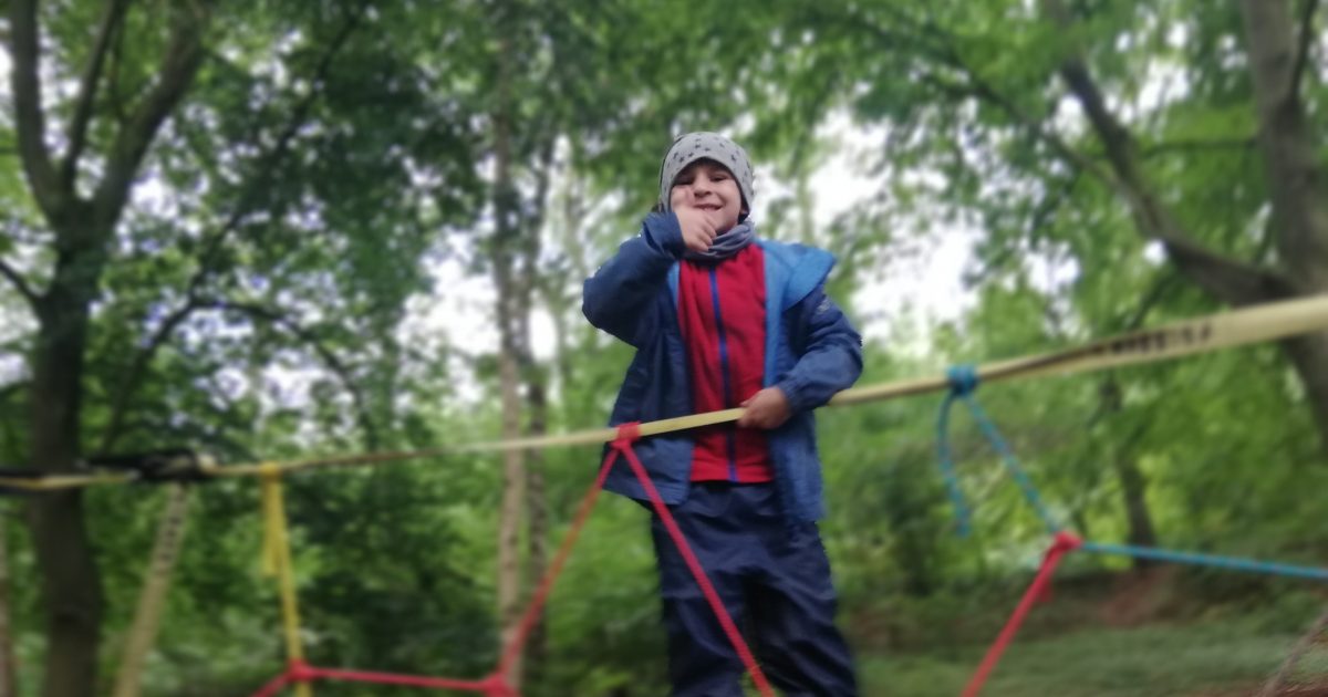 Im Waldkindergarten genießen wir die noch schön warmen Temperaturen: Jeden Freitag dienen die Bäume als Stützen für zahlreiche Seilkonstruktionen, die Erlebnispädagoge Christian Tammling dort knotet und den 51 Kindern des Waldkindergartens zur Verfügung stellt. Der Perspektivwechsel kommt bei allen gut an und so hängt man am Freitag eben mal in den Seilen.