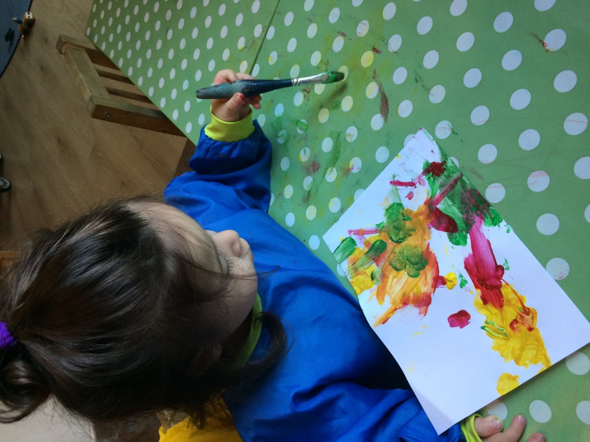 Im Spatzennest wird Kunst auch groß geschrieben. Auch die Kleinsten unseres Hauses haben sich mit dem Thema „Apfel“ beschäftigt und so entstand am Tuschtisch dieses schöne Bild: Ein Apfelbaum … oder?