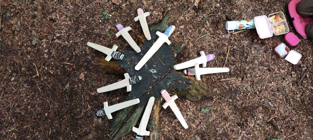 Unser Waldkindergarten verbrachte die erste Woche in den Schulferien mit einem besonderen Highlight: Wie die Wikinger zogen sie durch Langes Tannen, stellten sich Kleidung, Schwerter und auch Duftbeutel selber her und feierten am letzten Tag ein kräftiges Wikingerfest.